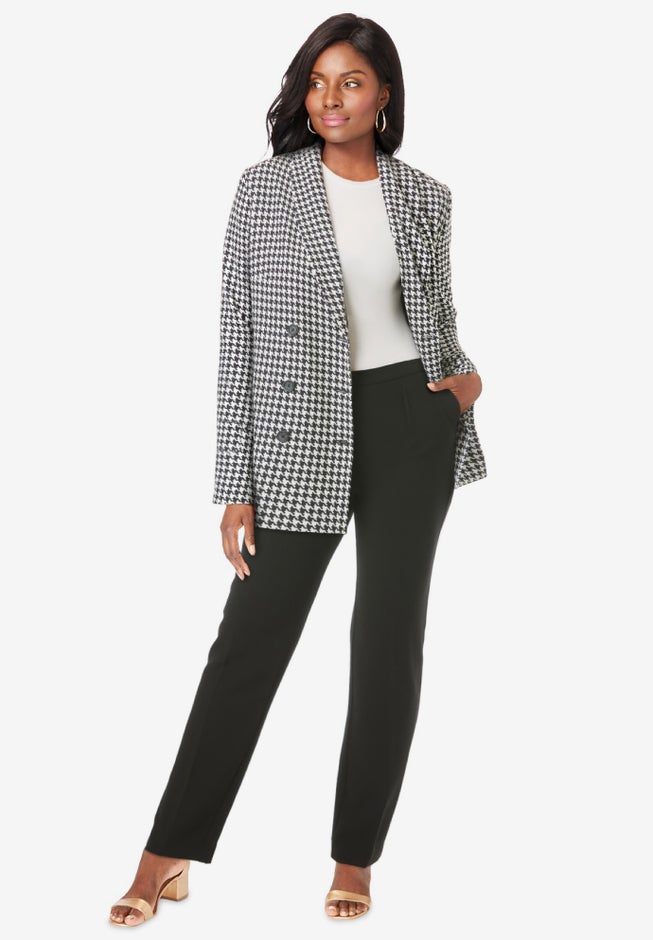 Expertly tailored, the Jessica London women's plus size 2-Piece Double-Breasted Pantsuit is a smartly-styled suit with a feminine and professional look. Features a jacket and pant in flattering straight fit.