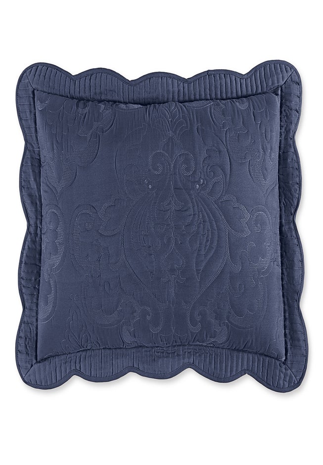 Designed to complement the Amelia bedspread, this sham features detailed damask embroidery that adds subtle texture and dimension to your bedding. The quilted construction and scalloped edge create a soft, tailored finish, helping your pillows look neatly styled whether in a master bedroom or guest room.