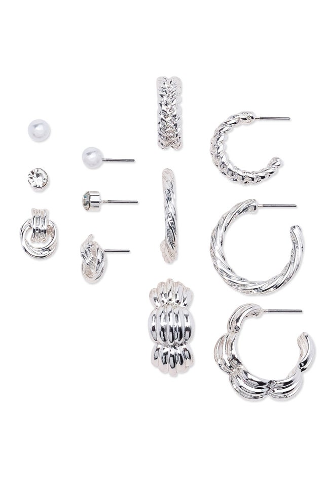 Versatile and effortlessly chic, the assorted stud and hoop earring set includes three pairs of classic studs and three pairs of stylish hoops—perfect for mixing, matching, and elevating any outfit. Available in your choice of gold or silver, this curated set makes accessorizing simple and stylish for every occasion. Rotate between studs for everyday polish and hoops for a bolder statement.