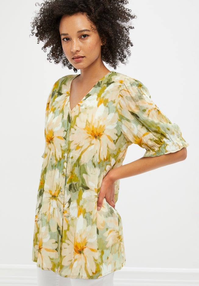 Button Front Crinkle Tunic