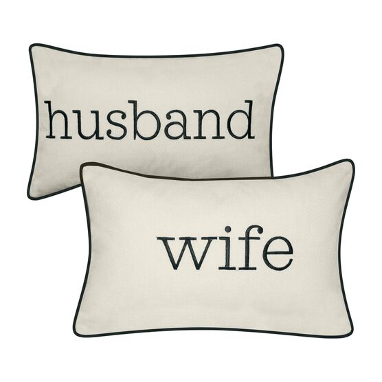 Celebrations ""Husband"" and ""Wife"" Embroidered Decorative Pillow