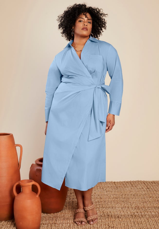 Collared Midi Wrap Dress