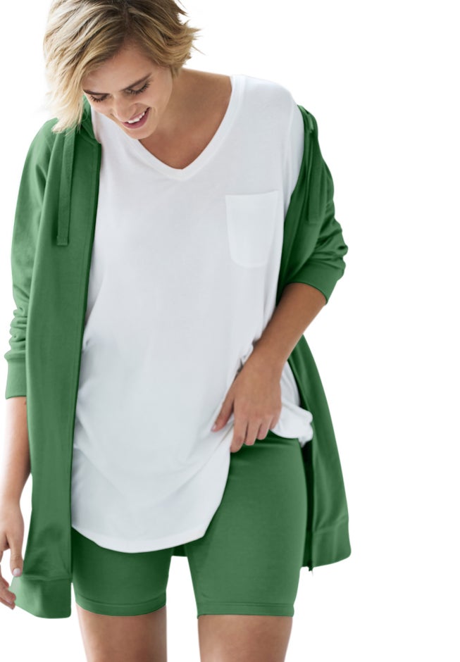 Ideal for wearing under your favorite casual dress or tunic, our stretch bike shorts feature an elastic waist and a fitted silhouette for ease of movement. The lightweight cotton/spandex jersey keeps you cool and comfortable year-round.