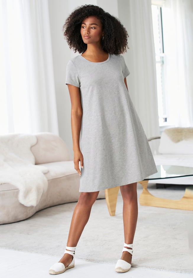 Cotton Spandex Scoop Neck Short Sleeve A Line Tee Dress