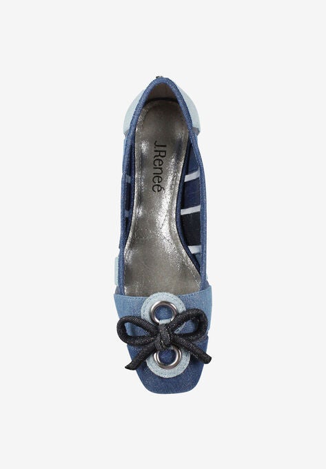 The modern eyelet with bow ornament adds the right amount of detail to this fabric and patent snip toe flat. This easy style is spring and summer versatility for anything day to night work to play. wear with denim to slacks to dresses. The Edie features a memory foam insole for added cushion and comfort. Make a style statement for any occasion with J. Renee'.
