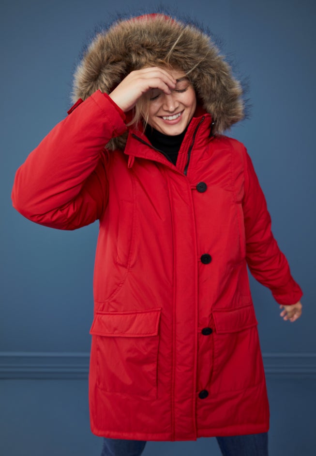 Keep the cold away in our cozy zip-off hood, water-resistant jacket. Features an inside waist bungee drawstring, chest pockets, slanted patch pockets with snaps. Velcro tab on sleeves Fully lined