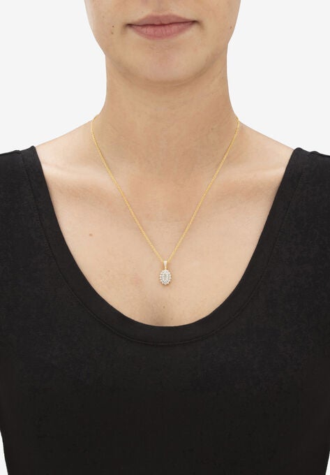 Elegantly styled with a marquise-shaped cluster of pave diamond rounds, this set features classic beauty you can wear with any outfit or special occasion. The set includes an 18" necklace with 2" extender, earrings, and ring. Includes gift box and drawstring pouch.