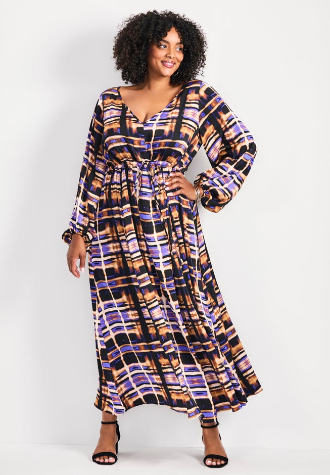 Step into the spotlight with the Goldi Maxi, your ultimate fashion statement! This polyester satin maxi dress, with its v-neckline and blouson sleeves, is crafted to make you feel like a runway star. The adjustable drawstring waist cinches in all the right places, ensuring a perfect fit for any occasion.