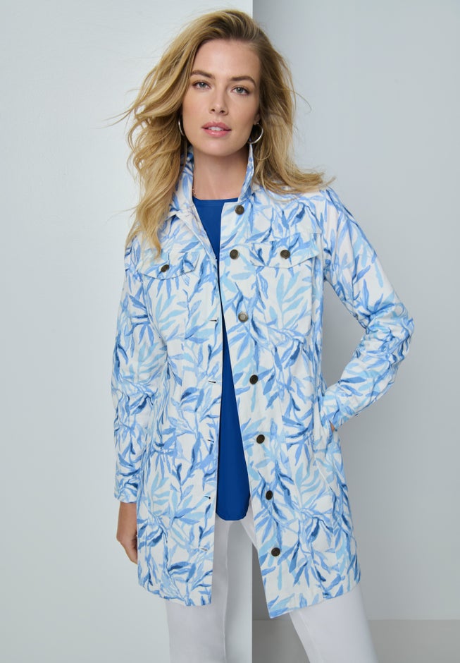 DETAILS: An easy, throw-on denim layer with extra length for coverage and everyday versatility.