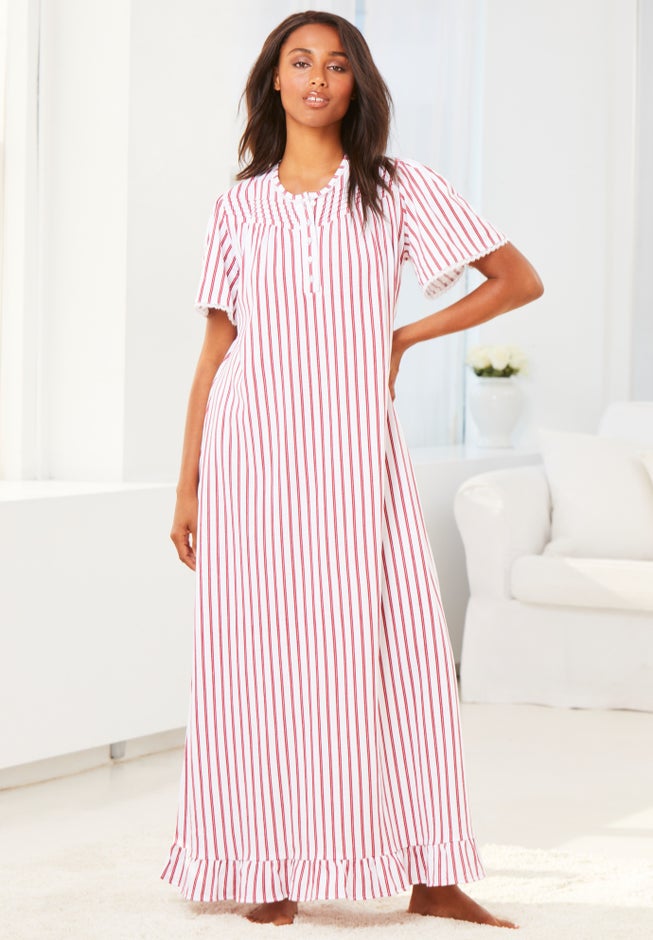 • Enjoy cozy nights and relaxed mornings in this charming long floral print cotton gown.