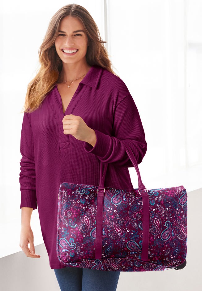 Pack up and go with this Duffle Trolley bag! Wear it alone with its long handle side straps or roll it around with its easy-grip handle. Perfect for a weekend get away and easy to stow away.