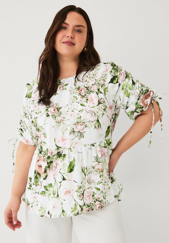 This peplum tunic offers versatile styling with convertible sleeves and a flattering A-line shape. Slim jeans or leggings keep the look balanced, while tailored pants create a more polished option.
