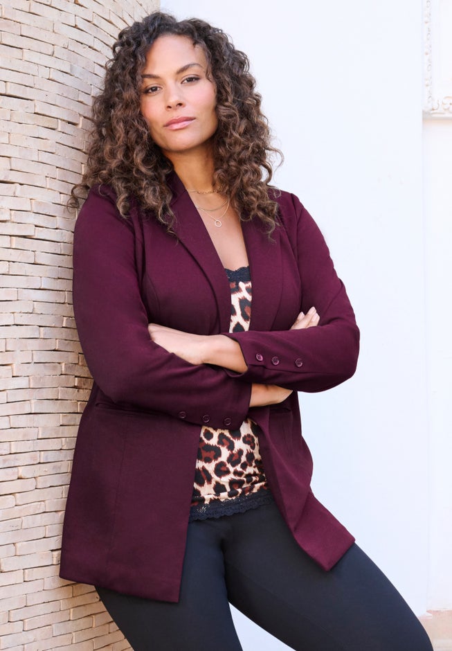Item Number: 1106462The Ponte Blazer combines timeless style with modern comfort, featuring a rounded notch collar, sleek princess seams, and functional welt pockets. Crafted from soft, lightweight ponte fabric that holds its shape but offers just the right amount of stretch, it's perfect for both professional and casual wear.