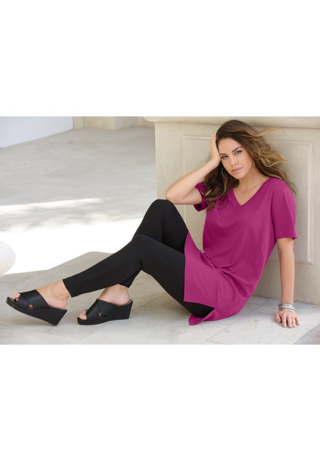 Item Number: 1005186This V-neck top is a bestseller for a reason. The loose shape is so easy to wear and comfortable, with side slits for ease of movement.