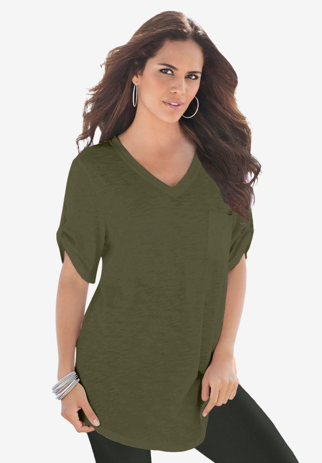 Plus Size Slub V-Neck Boyfriend Tunic Top