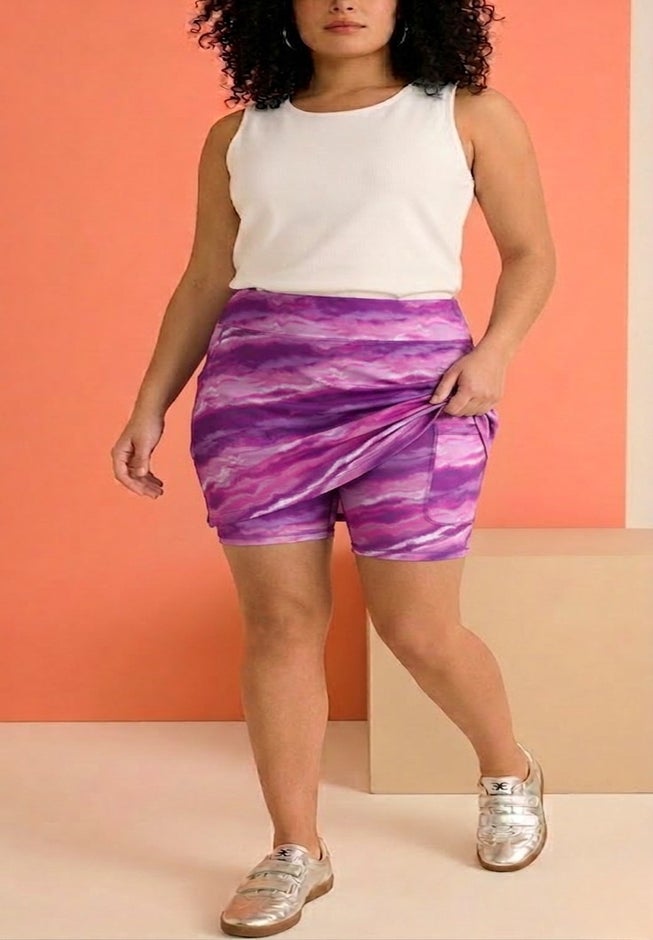Item Number: 1113865This A-line skort combines the ease of a pull-on skirt with the coverage of attached shorts. The wide elastic waistband smooths and supports, and a hidden patch pocket on the left hip is perfect for on-the-go essentials. Pair it with polos or lightweight sweaters for an active yet polished look.