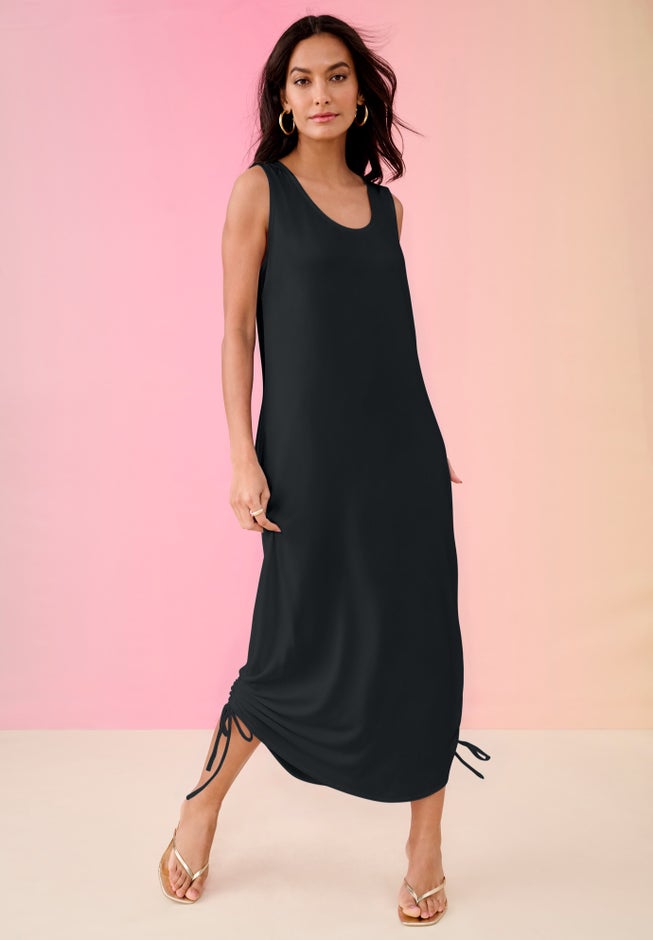 Item Number: 1114801Easy, flattering, and endlessly wearable—this ribbed sleeveless dress features a scoop neckline and adjustable side ruching so you can customize the length and shape to suit your day. The softness hugs your curves in all the right places, while on-seam pockets keep things practical. Pair it with flats or sneakers for a weekend look that's equal parts casual and confident.