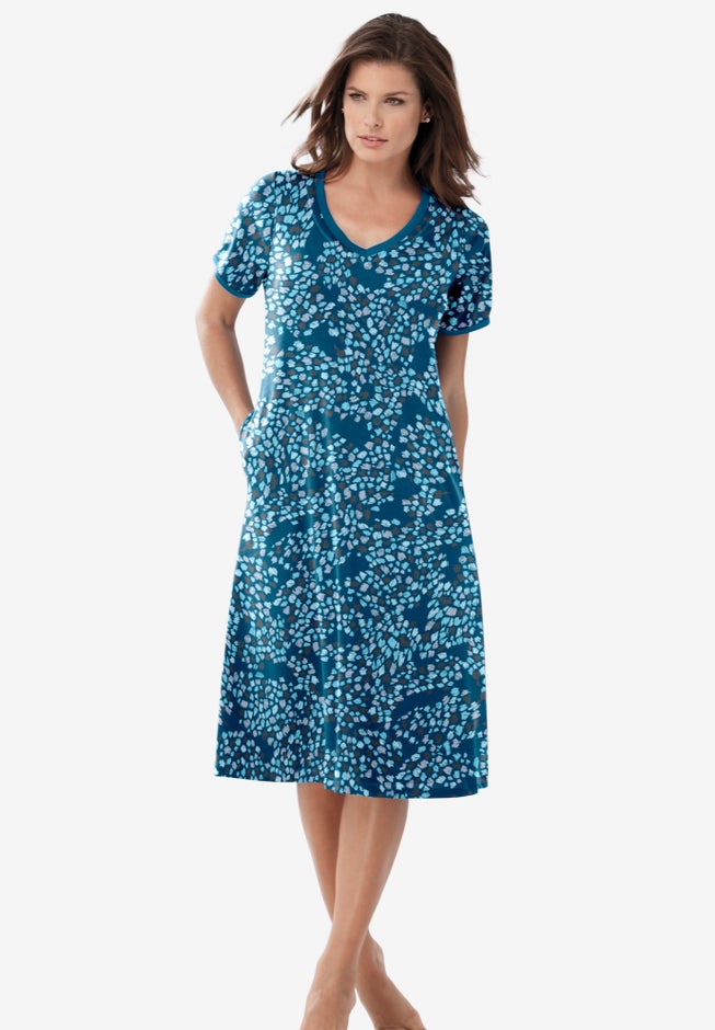• Enjoy ultimate comfort with this delightful lounge dress featuring short sleeves and V-neck.