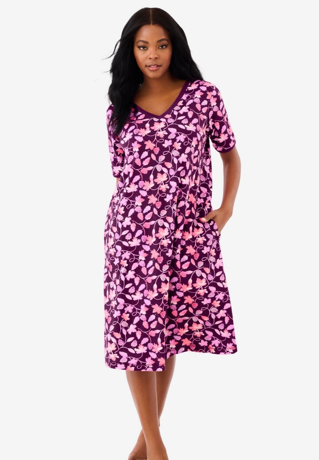 • Enjoy ultimate comfort with this delightful lounge dress featuring short sleeves and V-neck.