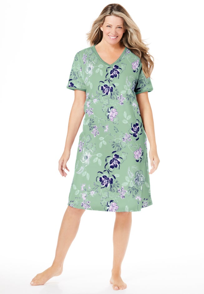 • Enjoy ultimate comfort with this delightful lounge dress featuring short sleeves and V-neck.