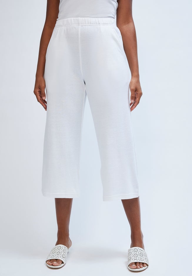 Our soft knit in a comfortable, cropped wide leg silhouette. Pair these flattering, grab-and-go bottoms with a knit tee and denim jacket for easy, all-day wear.