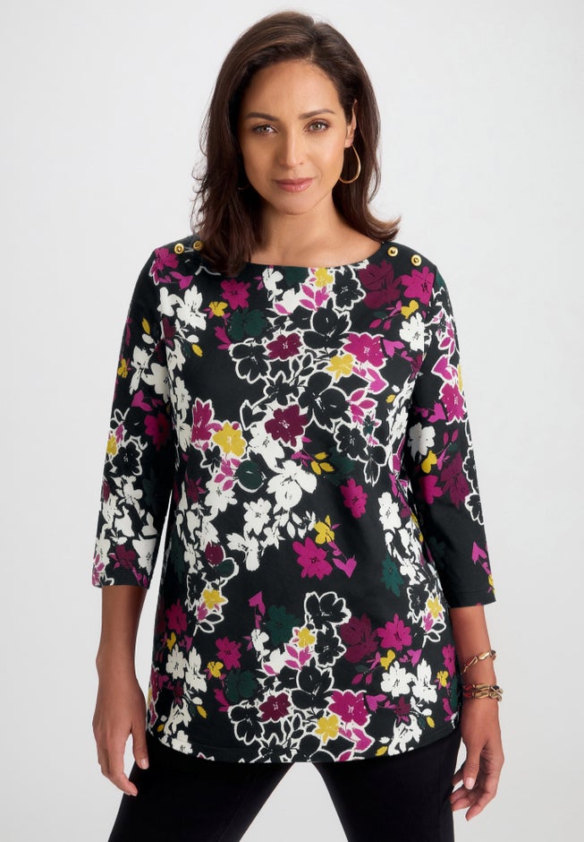 Designed for a relaxed yet refined silhouette, this women’s plus size tunic skims without clinging and holds its shape wear after wear thanks to its breathable stretch-cotton blend. The longer tunic length offers confident coverage for plus-size bodies, while its versatile design pairs easily with leggings, denim, or tailored bottoms for work-to-weekend styling.