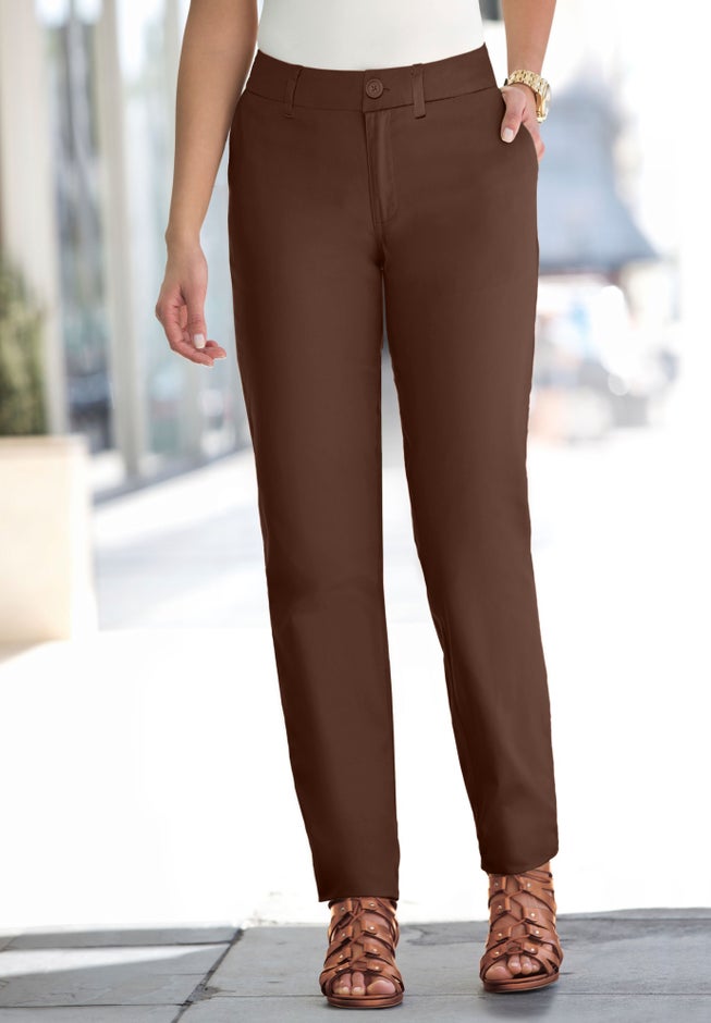 Like a classic chino, but better — the Jessica London women's plus size Stretch Cotton Chino Straight Leg Pant is crafted from cotton twill with a hint of stretch that keeps the fit comfortable and polished. Dress them up for work, then dress them down for a relaxed weekend.