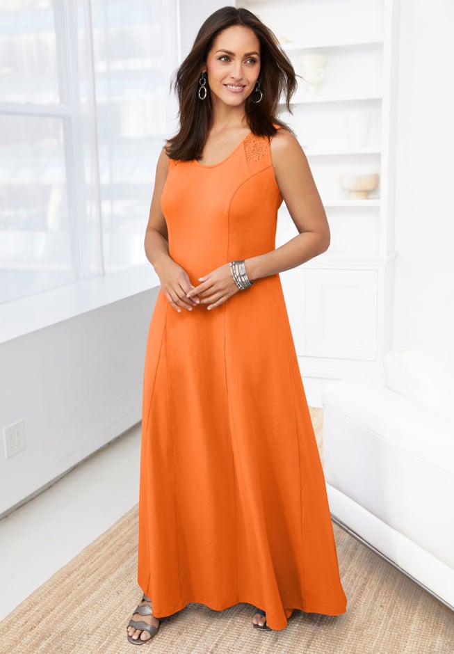 Our customers are appreciating our latest spring and summer maxi dress collection. They are liking the little feminine details added to classic silhouettes, like the crochet detail in this one.