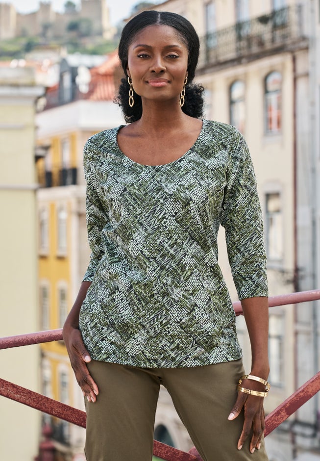 • Three-quarter sleeves for season-spanning wear