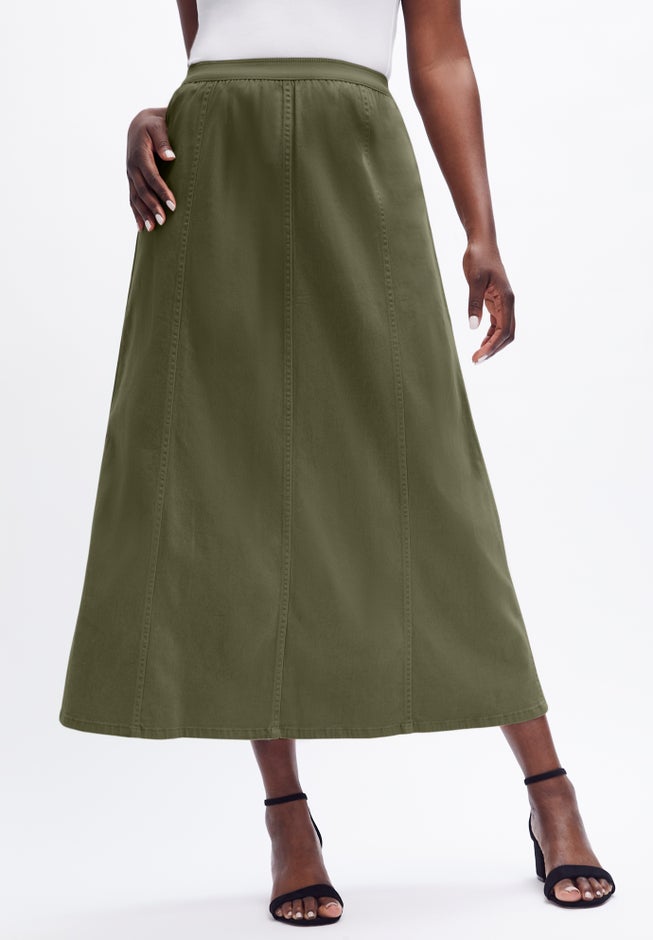Meet our highest-stretch denim, fashioned into a classic denim skirt with modern vertical seaming that gives it a unique, refined fit. The super-flex denim moves with you throughout the day while retaining its sleek shape.