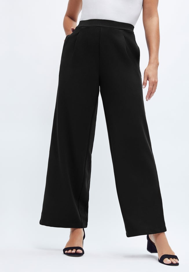 Our bestselling stretch crepe in a new wide-leg silhouette. With its straight wide leg and comfortable elastic waistband, this pant offers a fit that never fails to flatter. Take this classic silhouette out for an evening paired with a tunic and strappy sandals.