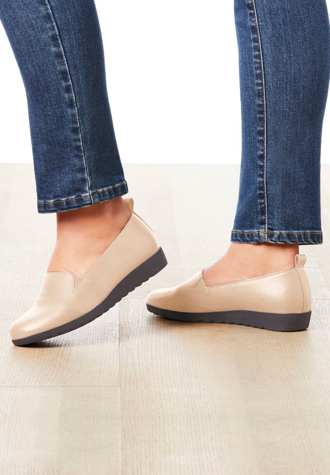 Durable faux leather flats available in full and half sizes 7-11, 12 M, W, WW