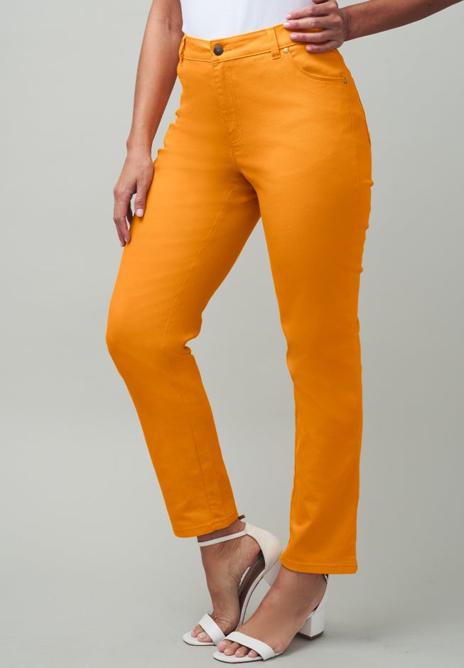 Premium stretch denim and a no-gap contoured waistband gives the Jessica London women's plus size True Fit Collection Stretch Denim Straight Leg Jean a curve-hugging hourglass fit that's full-on flattering. The look is relaxed, but also refined, making these jeans polished enough to wear to the office and cool enough for weekend outings.