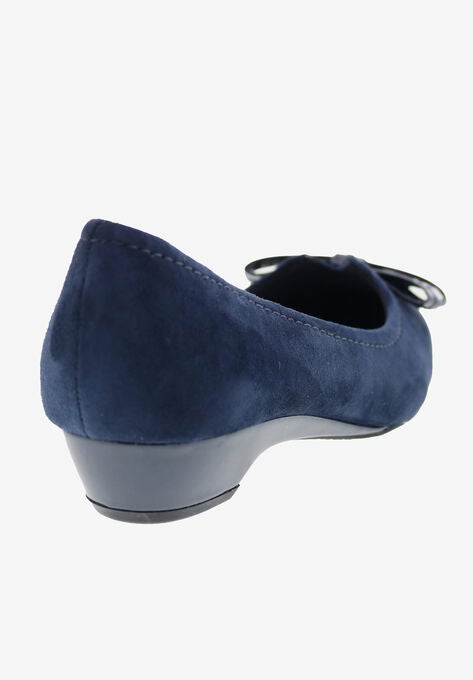 The Ros Hommerson Tulane is a classic style that makes a great addition to any outfit. Made from premium quality leathers, the Tulane is available in black or navy soft suede. A classic, decorative, patent leather bow adds a touch of elegance to this style. The padded footbed keeps your feet comfortable all day long, while the Drilex® lining wicks moisture away and absorbs odors. This classic slip-on style transitions easily from day to evening and is sure to become your new favorite.