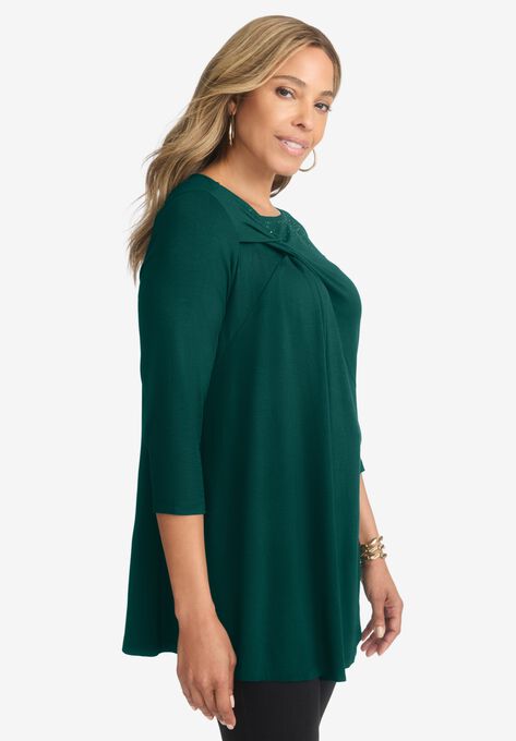 This tunic features a chic twist detail at the neckline that elevates your everyday look.Wear it to work or a work event paired with our shimmery trousers and pumps.