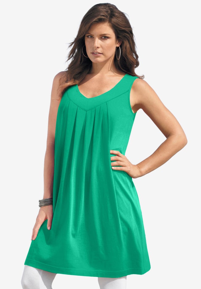 Item Number: 1010497An absolutely stunning tank top to keep in your closet with a pleated front and a V-back design. With its extended length, this tunic tank is just the right mix of style and full coverage.