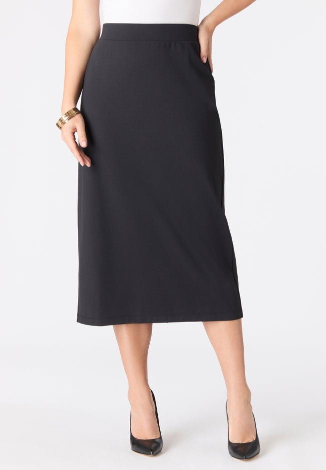 Item Number: 1108790This pencil skirt offers a sleek midi silhouette with a flat, elastic waistband, subtle shaping darts, and a back vent for ease and polish. It's a figure-loving fit and a timeless staple for appointments, dinner parties or nights out.