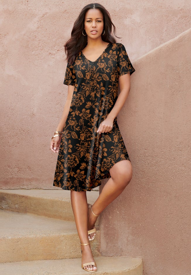 Item Number: 1031529We took our bestselling tunic and made it a dress! Meet your new throw-on-and-go favorite. The draped fit-and-flare silhouette effortlessly takes you from workday to weekend. Front and back V-necks.