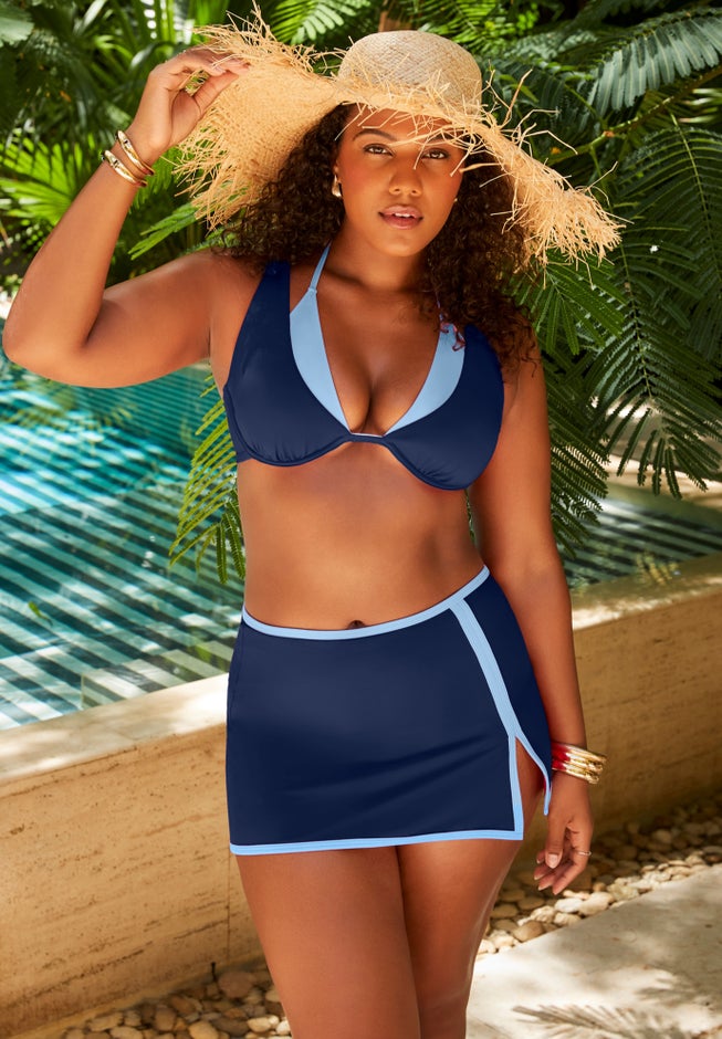 A soft contrasting underlayer sets the tone for the understated style of this bikini top. Built-in underwire bra provides extra bust support and lift, to enhance your natural shape, while the removable cups let you adjust the level of coverage and padding you want and need. A G-hook closure and customizable back straps let you alter the fit to your liking.