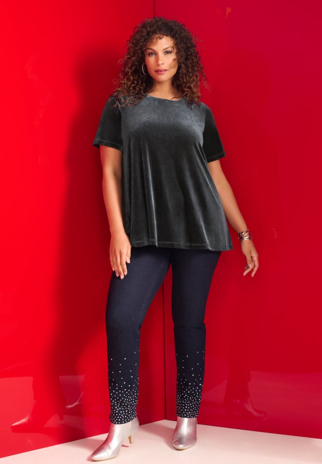 Item Number: 1039263Spoil yourself a bit with the rich color and luxe comfort with our Velour Swing Tee. Its plush, soft fabric keeps it comfortable to wear no matter the occasion. Pair it with leggings for a casual day out or with trousers for a more polished look.