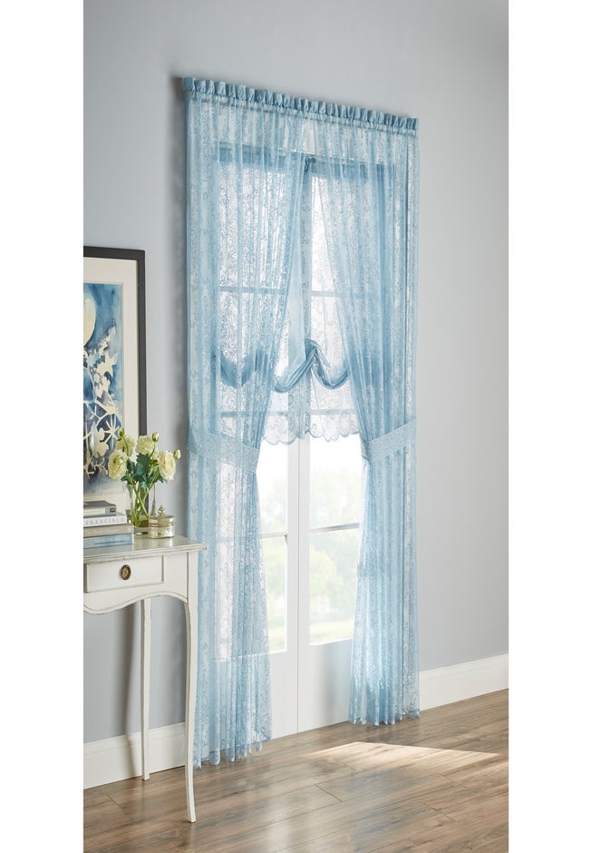 Light and airy lace on this rod-pocket panel gently filters light as it softens the setting. It's perfect for the living room, kitchen and even your home office. Let light in where you need it most while maintaining a comfortable level of privacy.