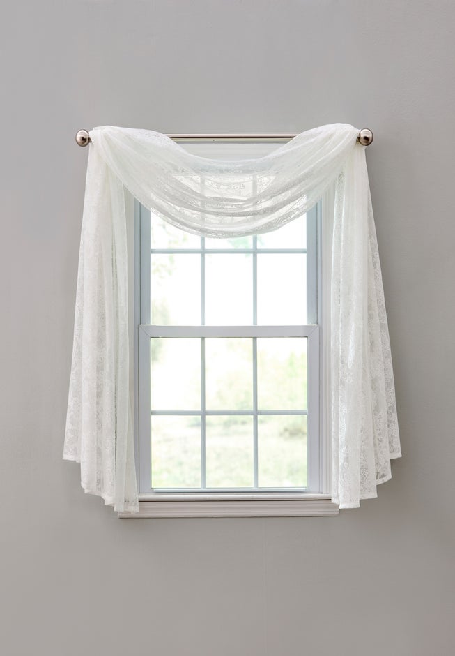 This vintage lace scarf luxuriously drapes over your window exuding airy elegance.