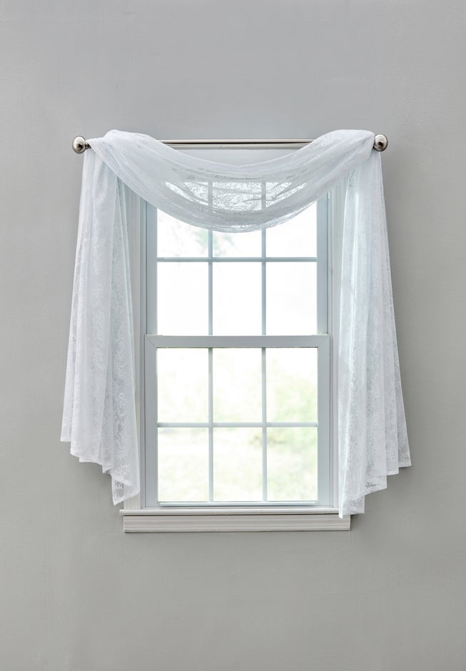 This vintage lace scarf luxuriously drapes over your window exuding airy elegance.