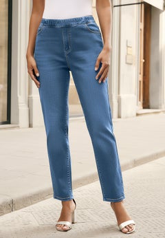 With a more relaxed fit from hip to hem, we think you'll find this style flattering for every body type. Not quite as snug as skinny jeans, yet still slim and sleek, plus size straight leg jeans are easy to wear.