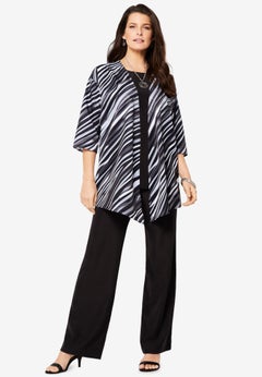 Available in sizes 12W to 44W, our plus size palazzo pants can take you from work to weekend with ease. We have cropped and full-length options, as well as styles with eye-catching patterns and prints. These chic bottoms add instant style to every look and will quickly become a closet staple.