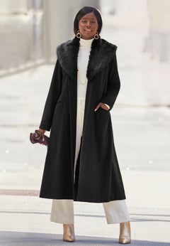 Faux fur is a fun and fashionable way to add interest to your special occasion and everyday ensembles. When combined with warm coats, it provides even more insulation and acts as a beautiful embellishment that symbolizes fall and winter. Whether you’re looking for a statement-making piece or a convertible everyday coat, we’ve got you covered.