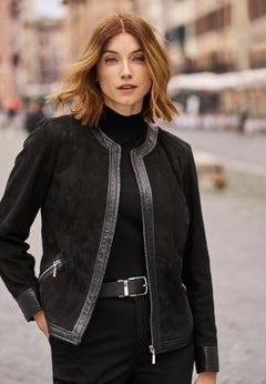 There’s no better way to stand out from the crowd than by wearing leather or faux fur. From the runway to the street, a chic biker jacket or fluffy teddy coat adds a little edge to any look. At Roamans, we offer plenty of plus size leather jackets and faux fur coats in tons of silhouettes, colors and patterns, so the hardest part will be picking your favorite. Indulge in glam silhouettes, striking hues and standout patterns like the ones featured in our Donna Salyers Fabulous Furs collab, a sumptuous collection of guilt-free styles.