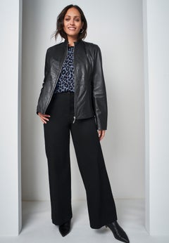 There’s no better way to stand out from the crowd than by wearing leather or faux fur. From the runway to the street, a chic biker jacket or fluffy teddy coat adds a little edge to any look. At Roamans, we offer plenty of plus size leather jackets and faux fur coats in tons of silhouettes, colors and patterns, so the hardest part will be picking your favorite. Indulge in glam silhouettes, striking hues and standout patterns like the ones featured in our Donna Salyers Fabulous Furs collab, a sumptuous collection of guilt-free styles.