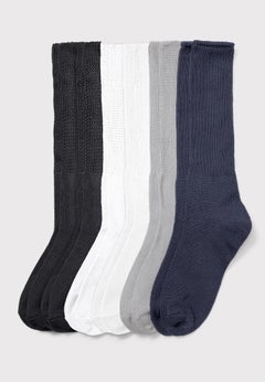 Stockings provide the perfect finishing touch to your look and they keep you warm and cozy when it’s cold out. In our collection, you’ll discover an incredible range of styles in different colors and patterns to choose from. Black hosiery coordinates with all of your favorite clothes and shoes while sheer stockings lend a polished touch to every outfit. Add a little flair to your look with a pair of patterned tights or make a statement with tights in a bright, bold hue. Make every day a little more comfortable with our collection of extra-wide socks. We have everything you need to upgrade your sock wardrobe, including bright colorful pairs, simple solids and specialty styles made to control moisture, improve circulation and reduce swelling. Now it’s easier than ever to give your legs a little love with plus size stockings and extra wide socks that fit and flatter.