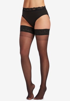 Women come in all shapes and sizes and it’s time that stockings do too. Featuring a wider calf and thigh for a more comfortable fit, our plus size stockings feel as good as they look. Each pair is built to last and retain its shape without sagging or bunching. Want to make your legs look sleek and smooth? Try a pair of support hose or control top tights to help trim the tummy and shape the thighs. We also carry specialty styles like compression hosiery to aid in healthy circulation.